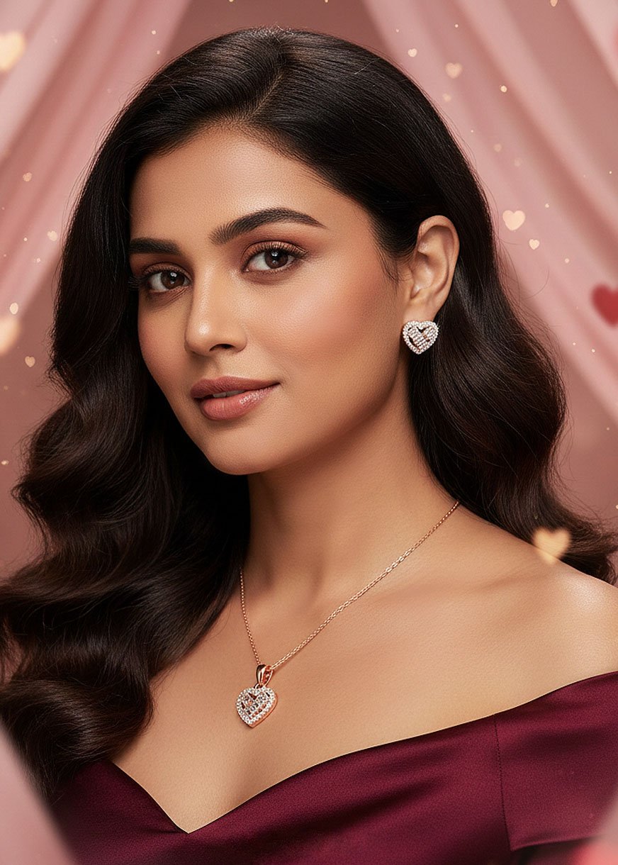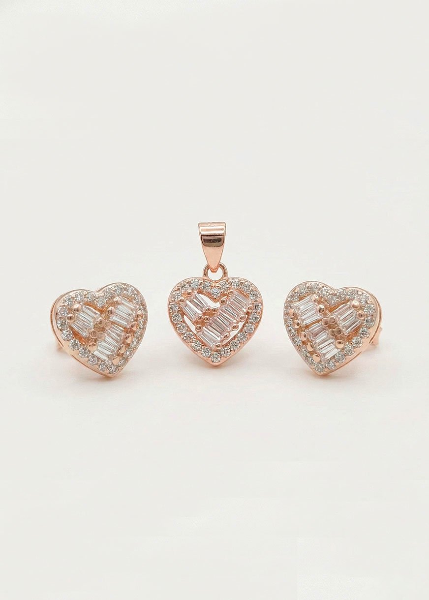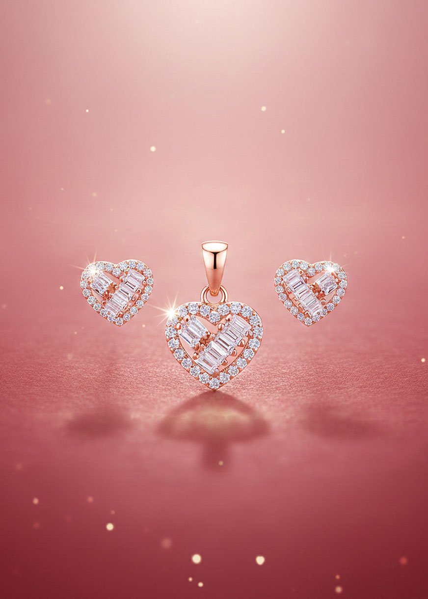 rose gold touch, this pendant set symbolises love and timeless charm.