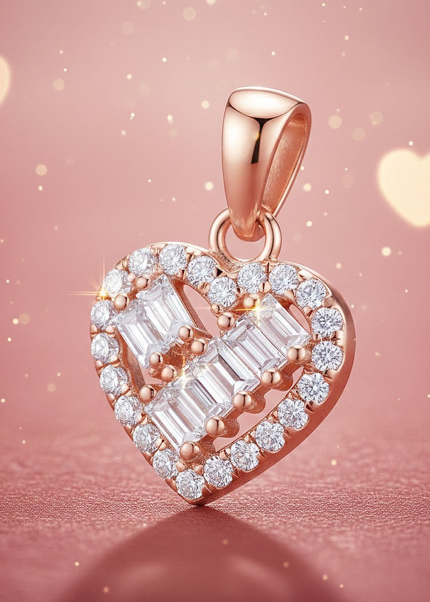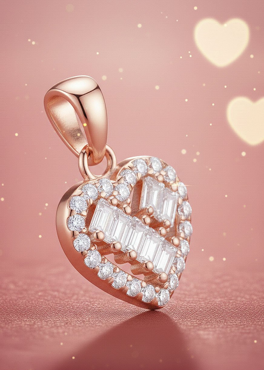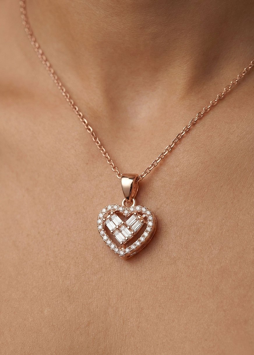 rose gold touch, this pendant set symbolises love and timeless charm.