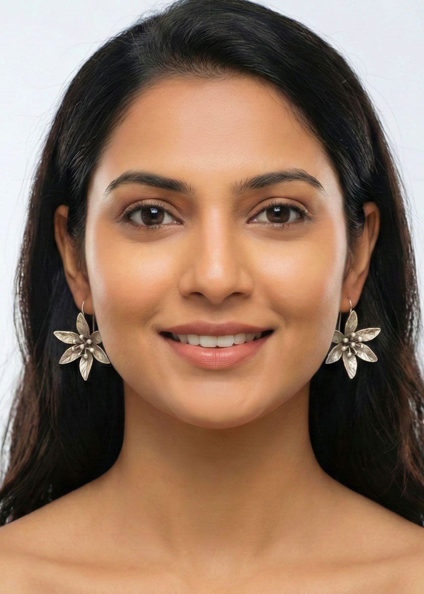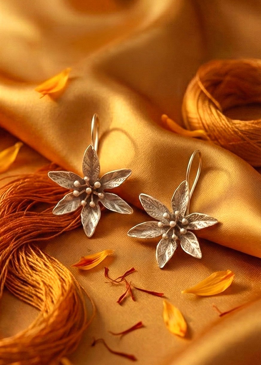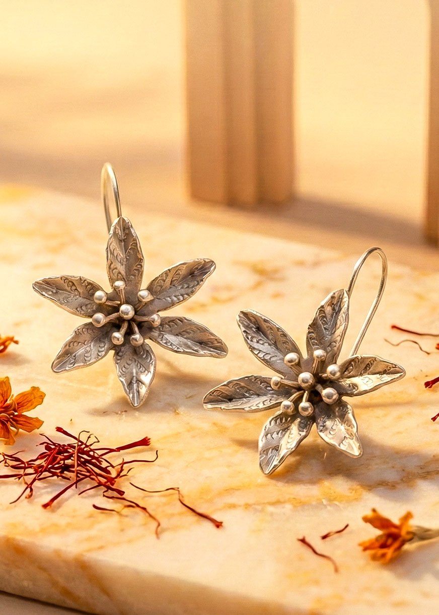 🌼 Enchanting Floweret Saffron Silver Earring