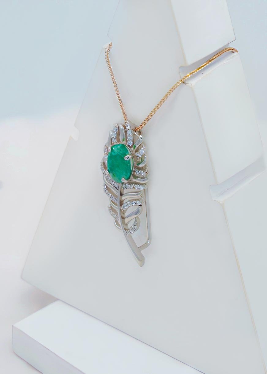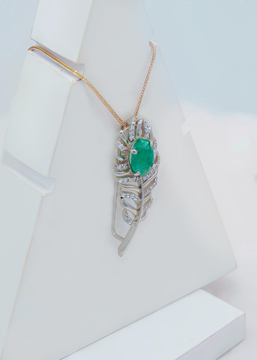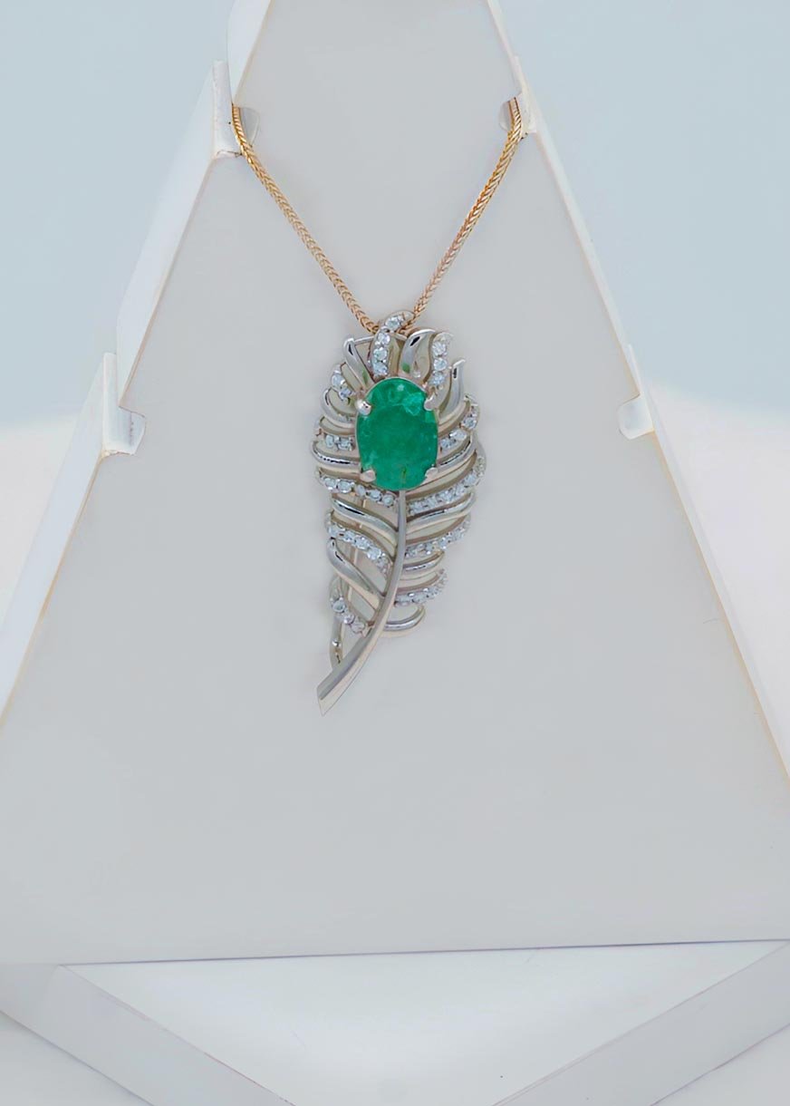 Enchanting Noora Emerald Bird Feather Silver Brooch Pendant