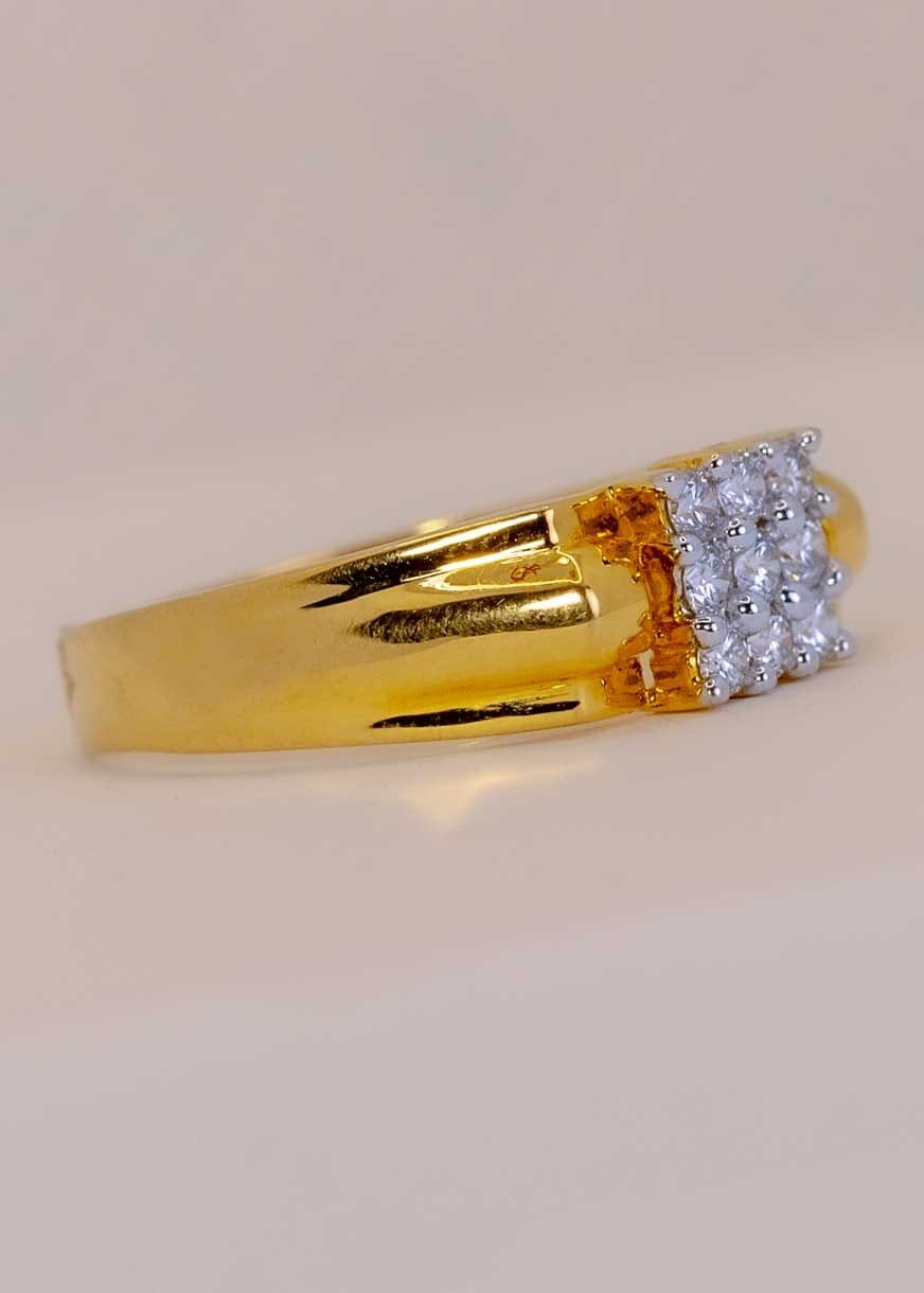 18k BIS 100% Hall mark Gold with natural certified VVS clarity Diamonds. The Gold Kia Men’s Ring is an elegant design for men. Studded with diamonds and crafted in gold, this ring will add a luxurious touch to your daily endeavors and seamlessly elevate your outlook.