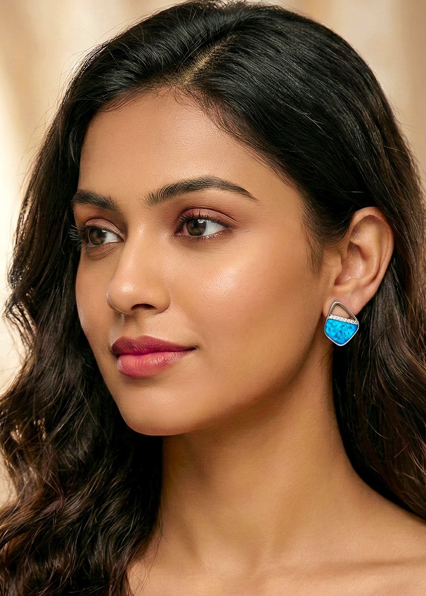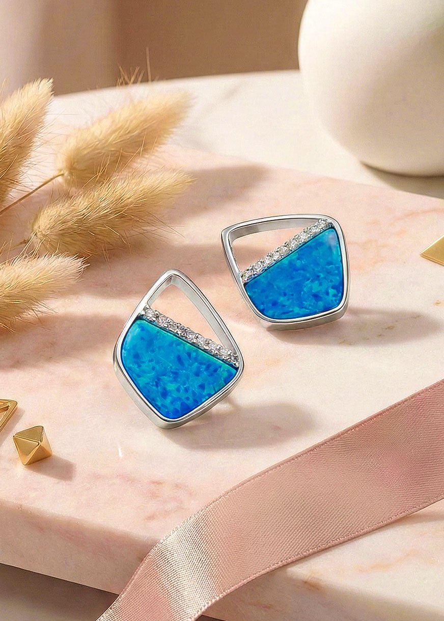 Experience pure elegance with the Lush Blue Opal Earring, crafted from The soothing Blue Opal brings a calming natural sheen.