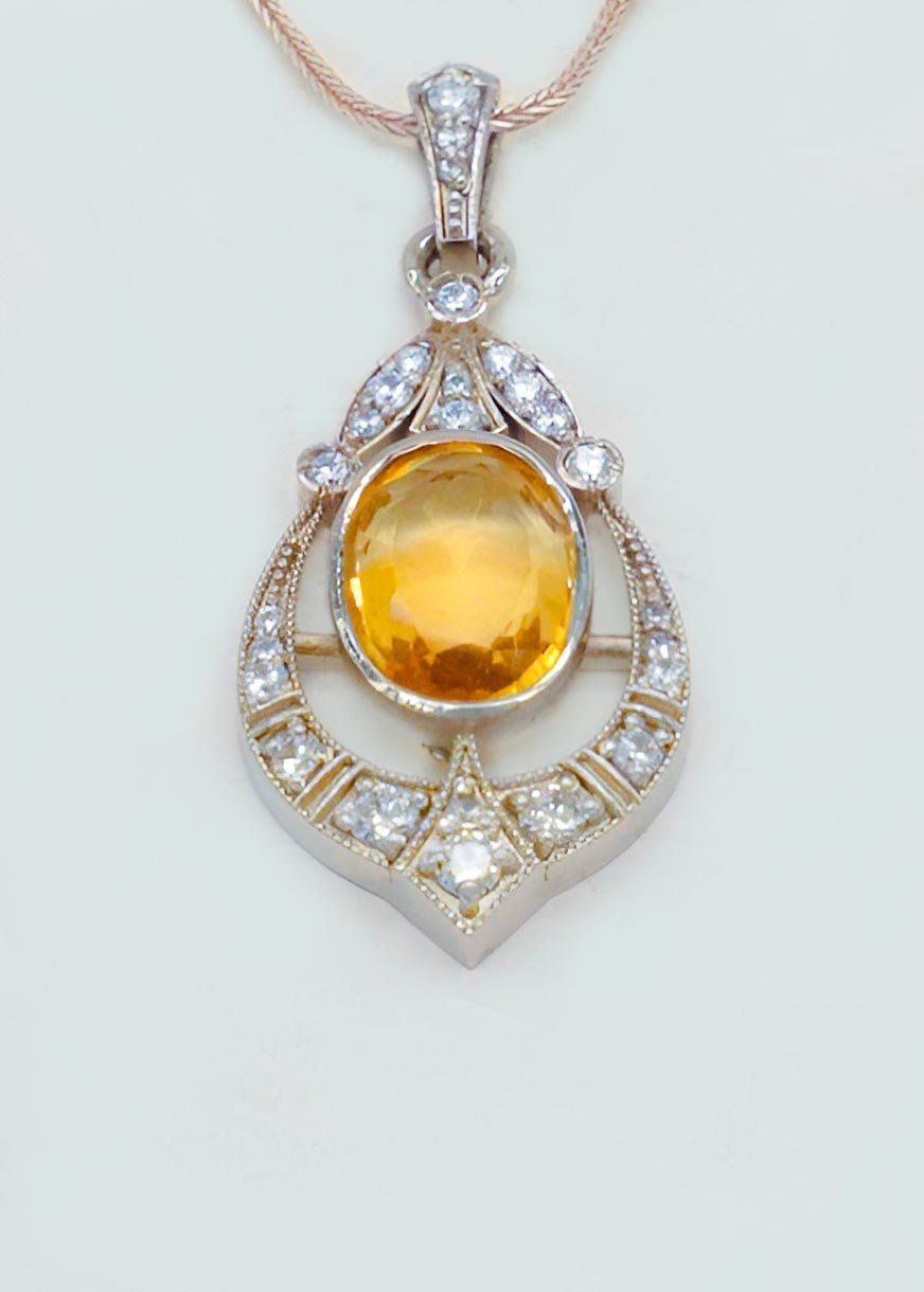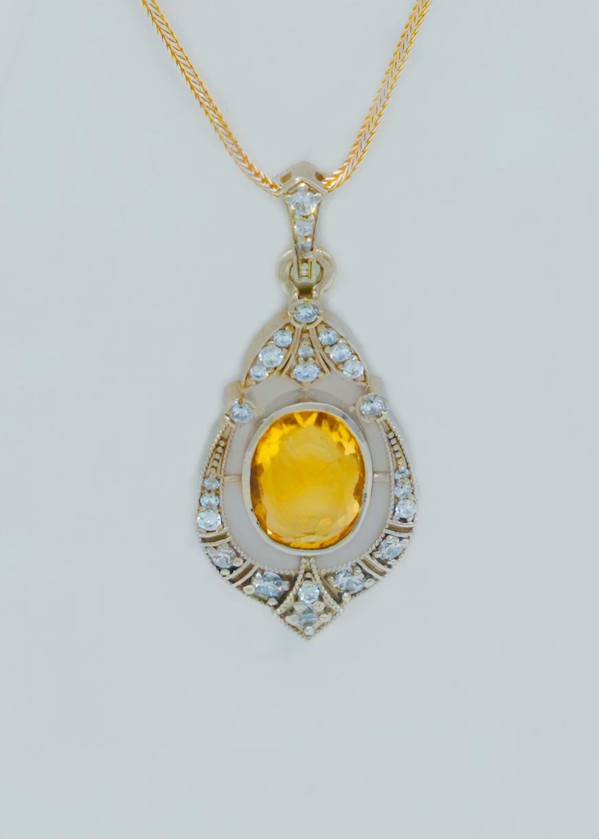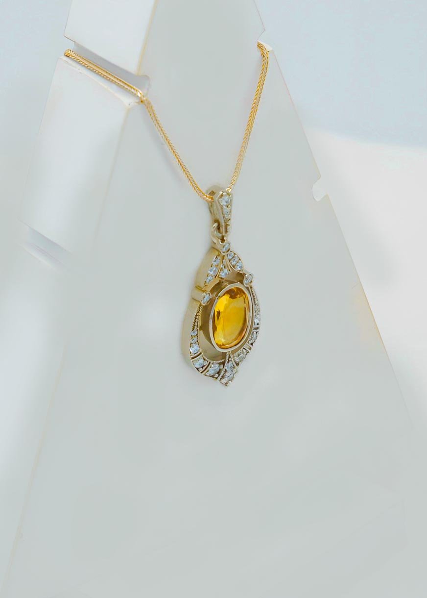 This striking pendant features a natural Citrine, radiating warm golden hues with a subtle royal flair. Its Gothic-inspired design makes it a perfect choice for those who appreciate vintage charm with a modern twist. Whether worn as a statement piece or paired with other accessories, this pendant adds depth, personality, and artistic refinement to any outfit.