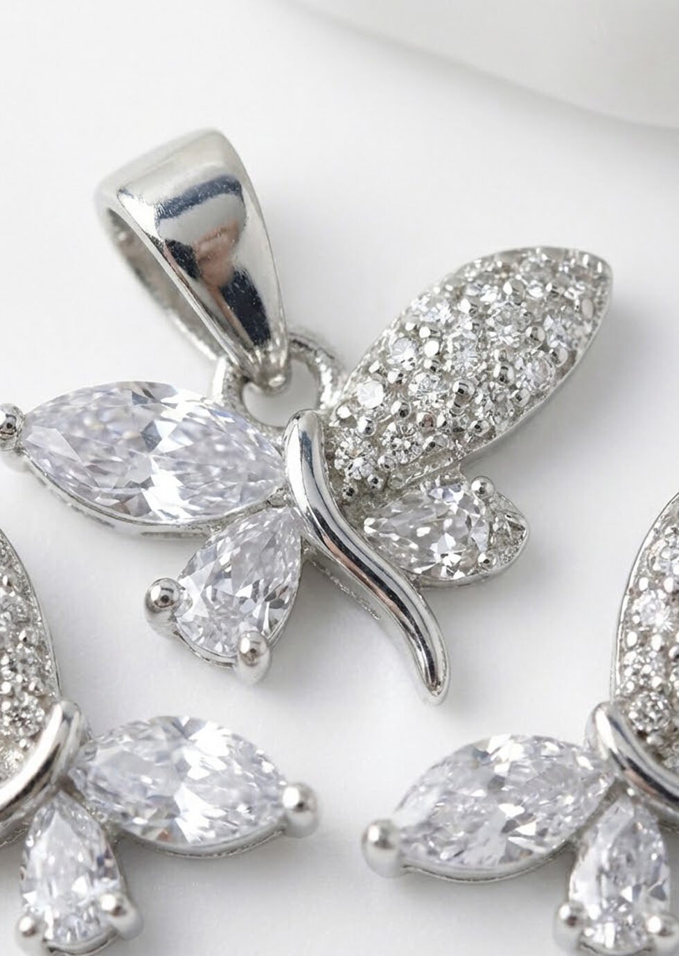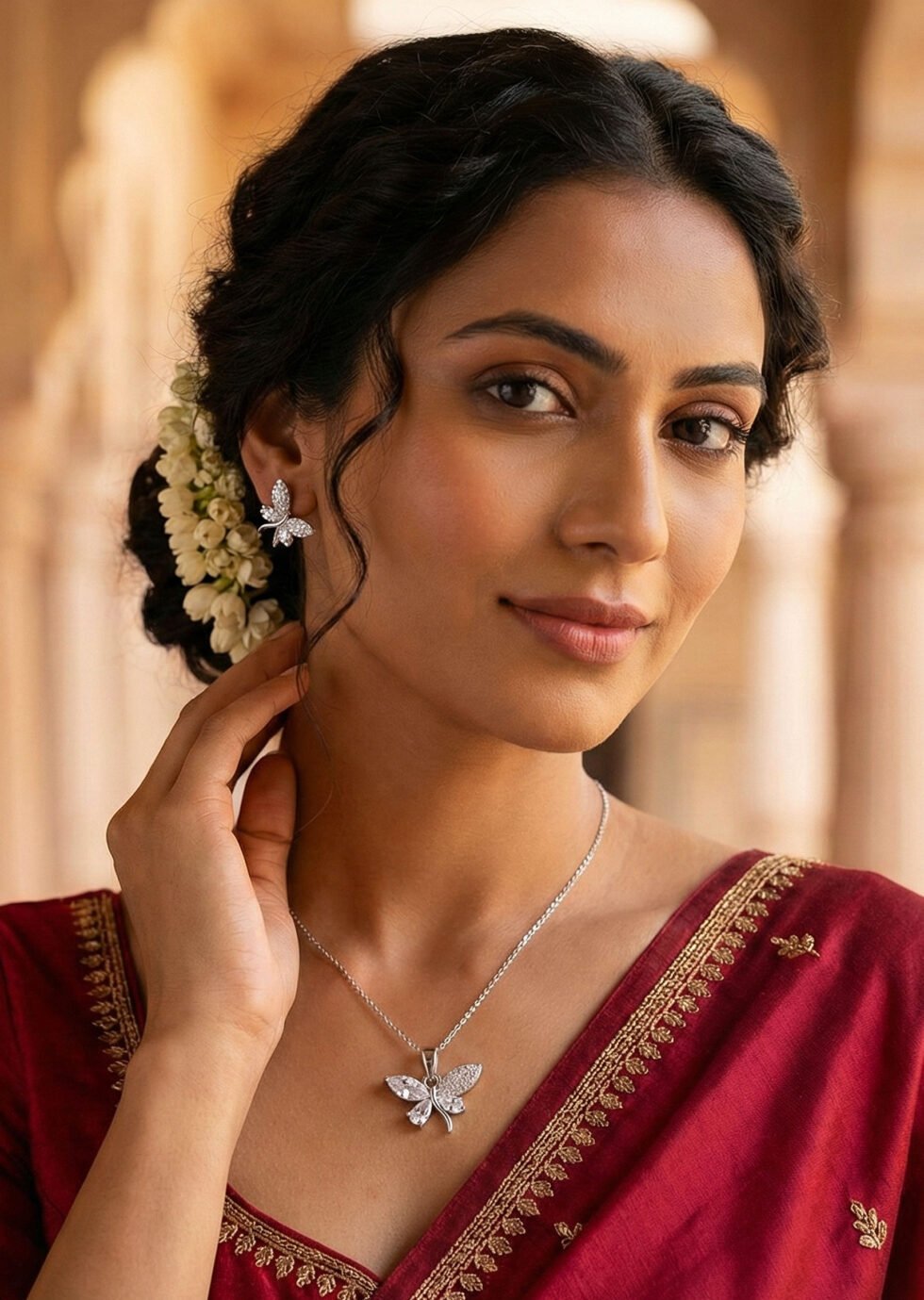 Embrace subtle elegance with the Moth Charm Silver Pendant Set, beautifully crafted in