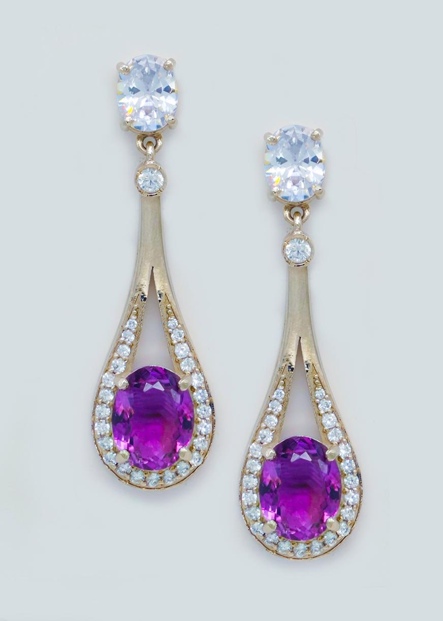 925 Hallmarked Silver | Natural Amethyst & Zirconia | Hypoallergenic