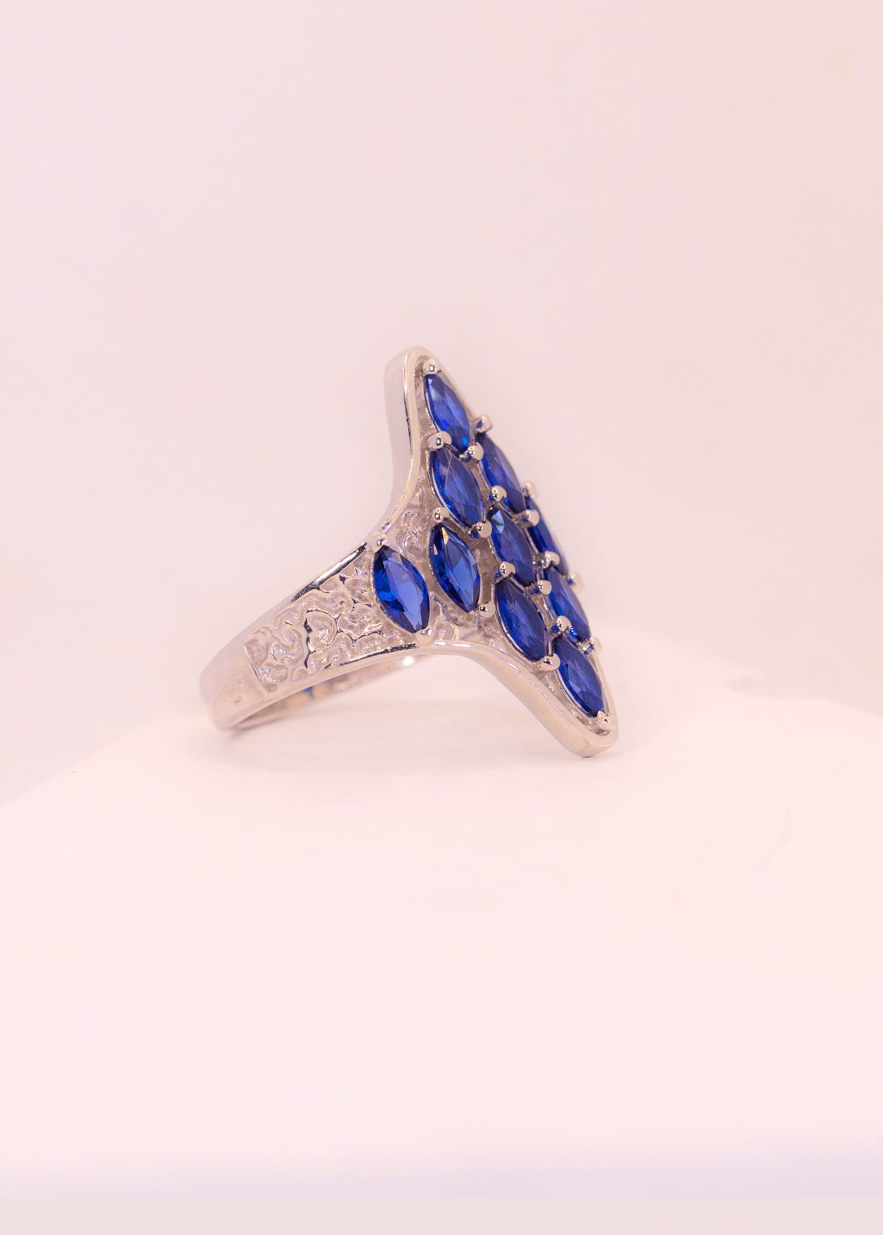 The Silver Aura Neelam Finger Ring is testamentary to timeless royalty and elegance. This silver ring featuring blue gemstones showcases the ethereal allure of gemstones. With this statement ring, you can experience luxury in all moments of life.