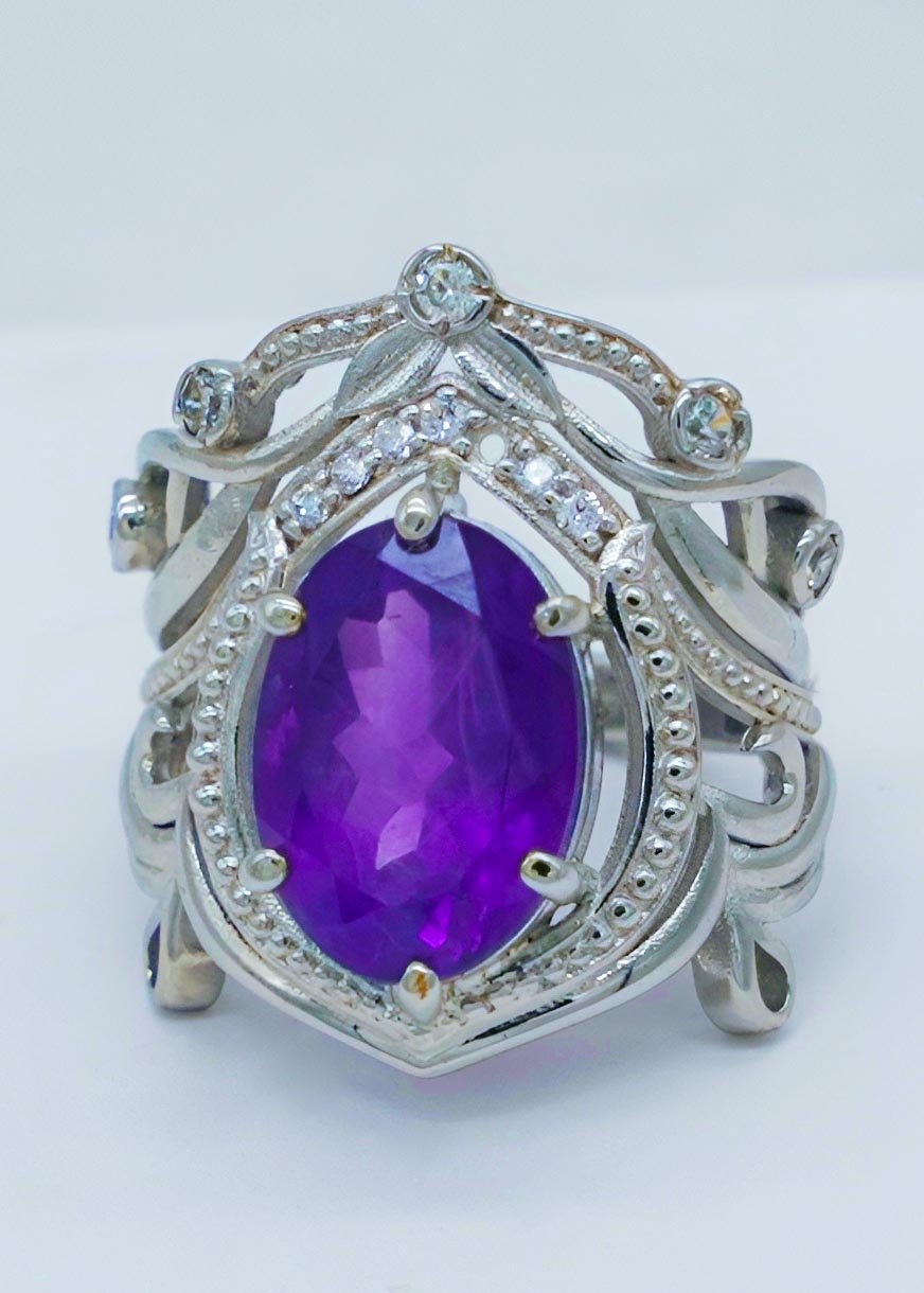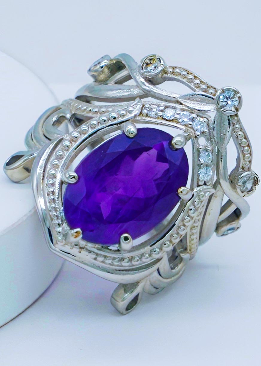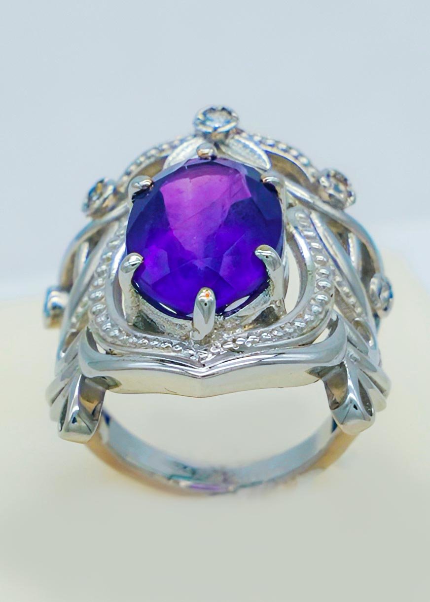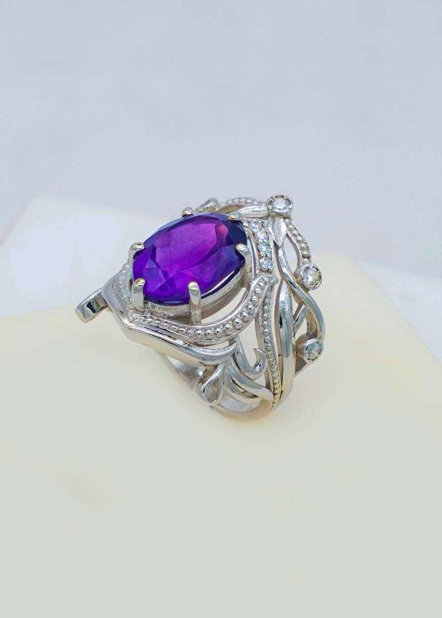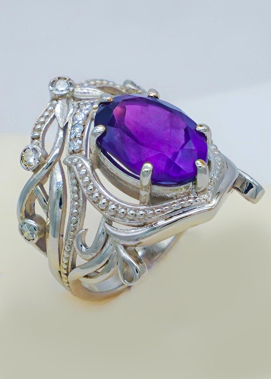 This captivating ring showcases a natural Amethyst, radiating a regal gleam that reflects true Victorian charm. Its intricate craftsmanship makes it a perfect blend of heritage beauty and modern refinement, ideal for elevating your everyday style or complementing special occasion looks.