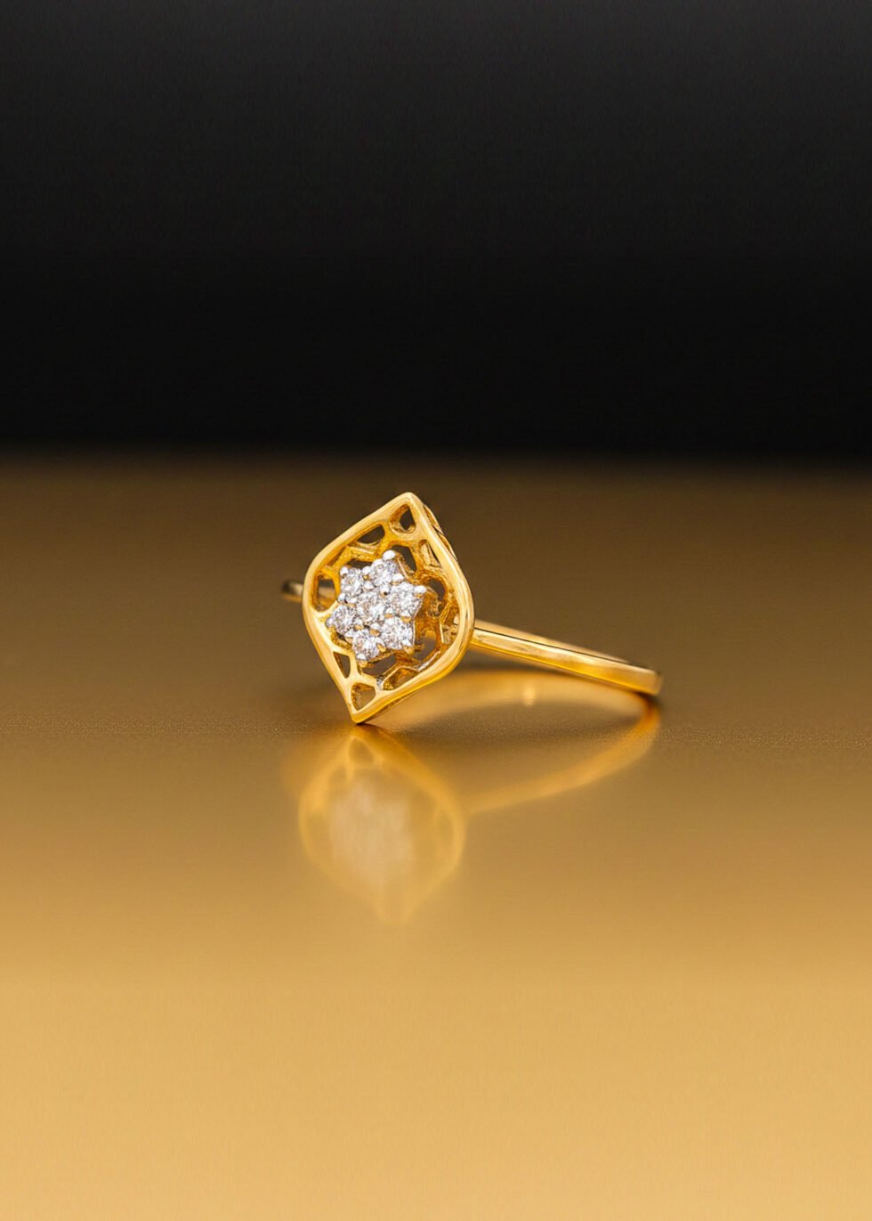 🌼 Yellow Gold Flower Diamond Finger Ring